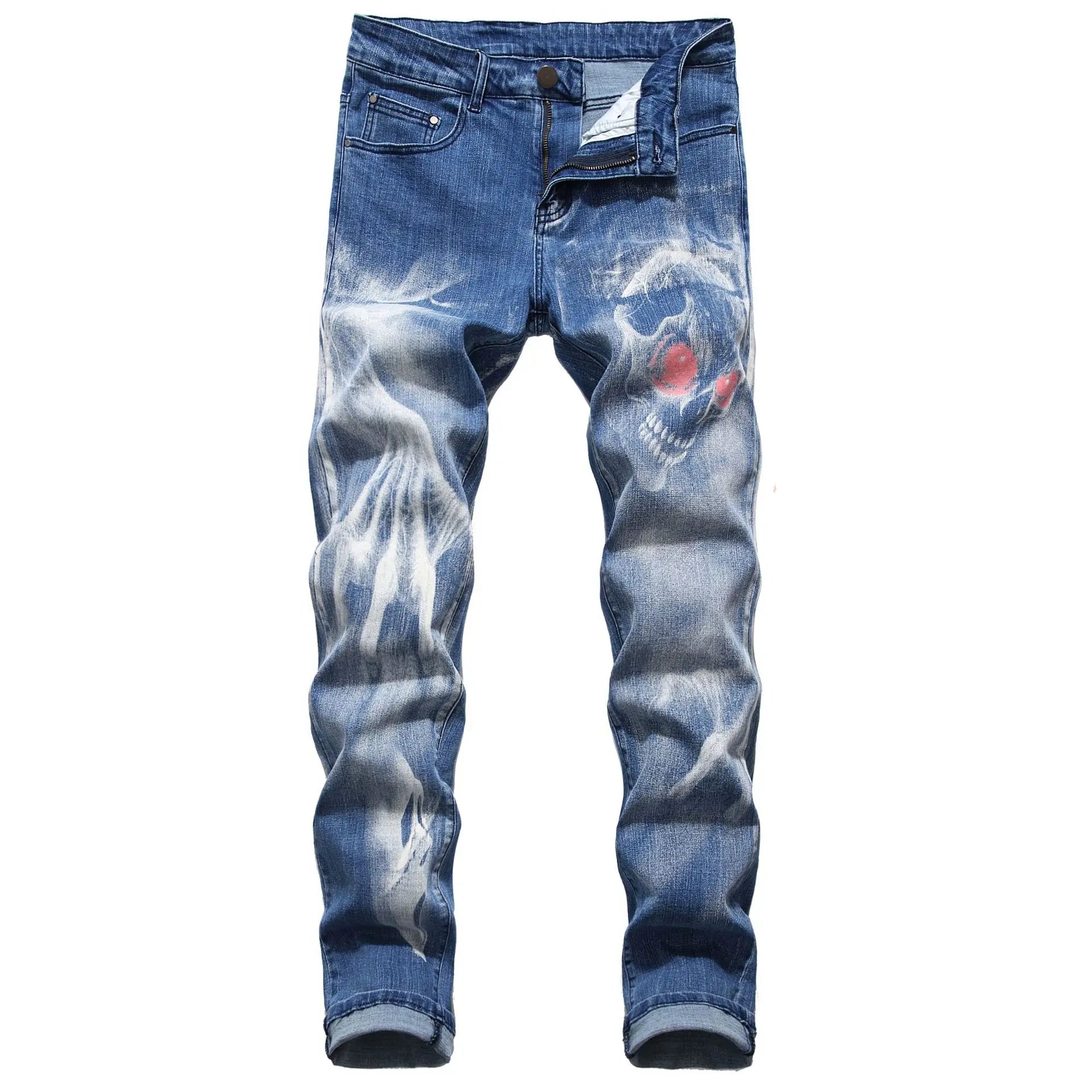 Blue Men's Jeans 3D Digital Print Stretch Denim Pants Blue Black White Trousers Men Fashion Slacks 28-34 36 38 40 42