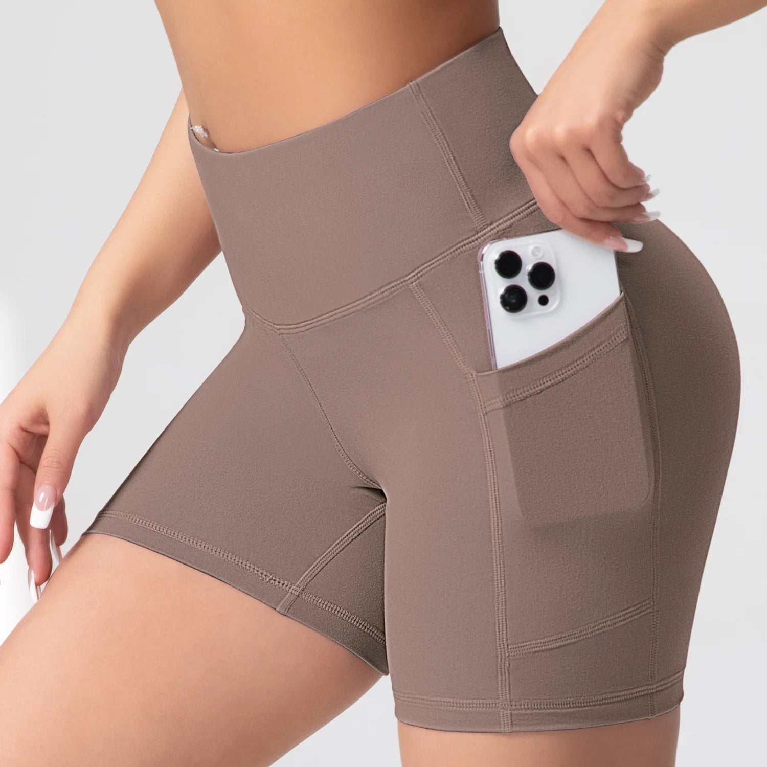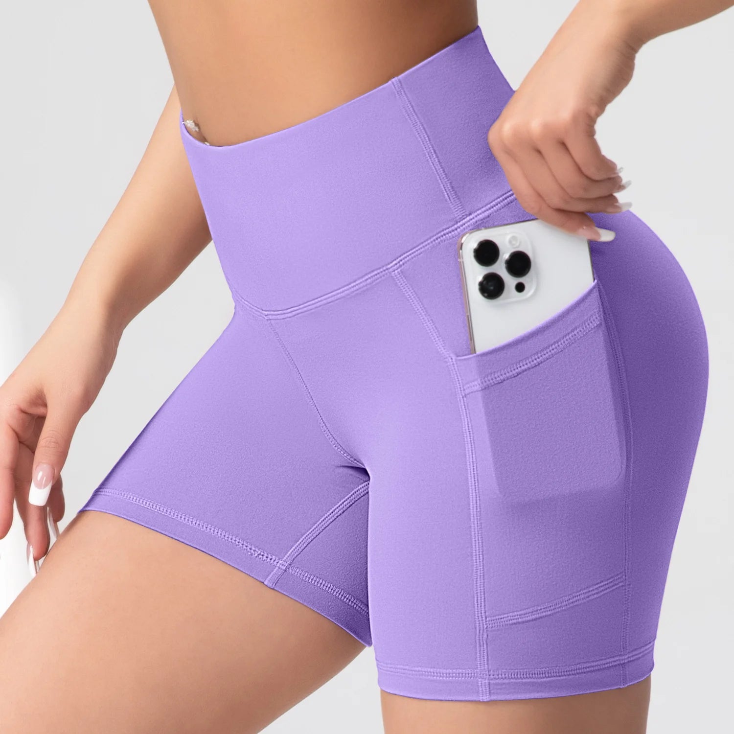 CHRLEISURE Yoga Shorts with Pockets High Waist Butt Lifting Cycling Tight Elastic Slim Running Fitness Women Shorts Sportswear