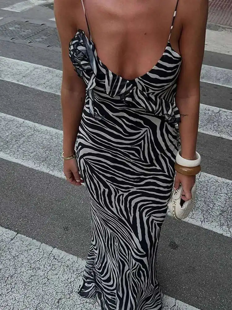 Fashion Print Backless Women Long Dress Elegant Sleeveless Spaghetti Strap Bodycon Dresses Female Evening Party Beach Robe