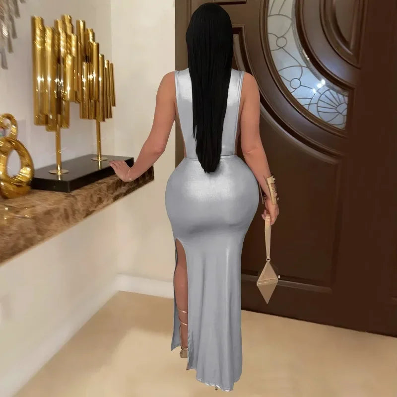 GUWU Women Gilding Sleeveless Cut Out Bodycon Midi Maxi Long Dress 2025 Summer Beach Vacation Sexy Party Birthday Dresses