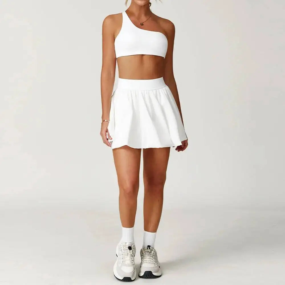 PCS Women S Yoga Set Tracksuit One Shoulder D Floral Sports Bra Pleate High Waist Short Skirt Workout Clothes Running Gym Suit