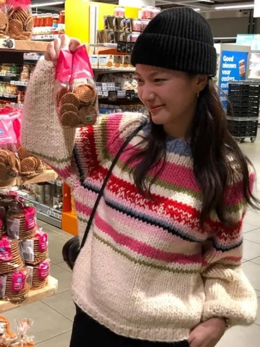 Retro Rainbow Stripes Lazy Sle Loose Knitted Sweater Women's Autumn New Faionable round Ne Top Versatile Comfortable Fit